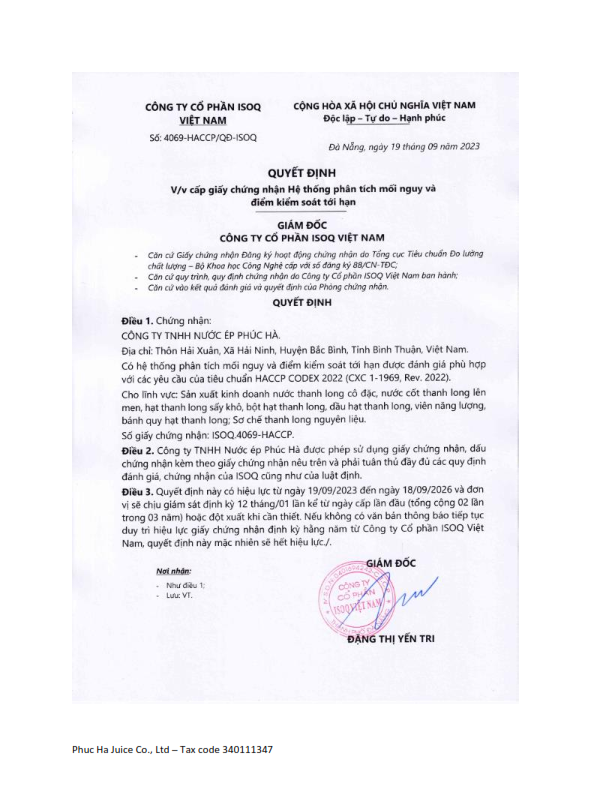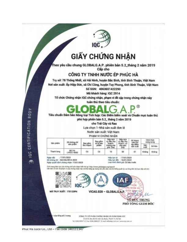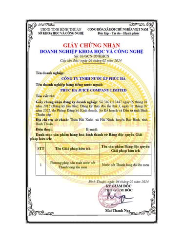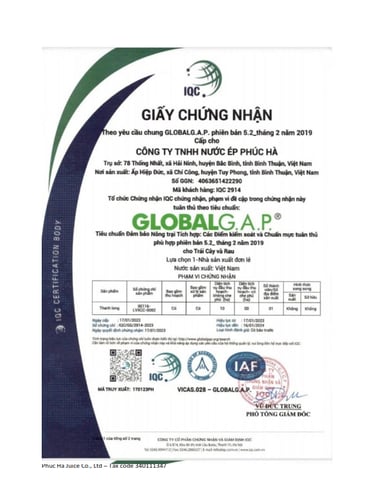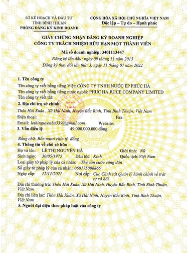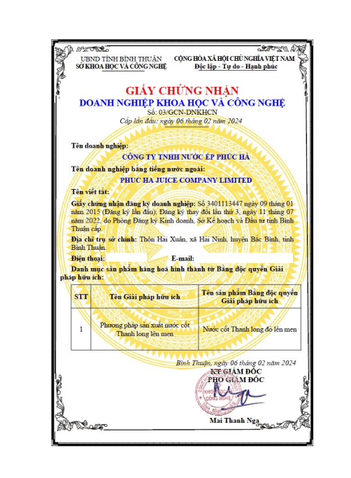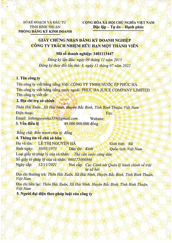 CÔNG TY TNHH NƯỚC ÉP PHÚC HÀ | PHUC HA JUICE CO., LTD