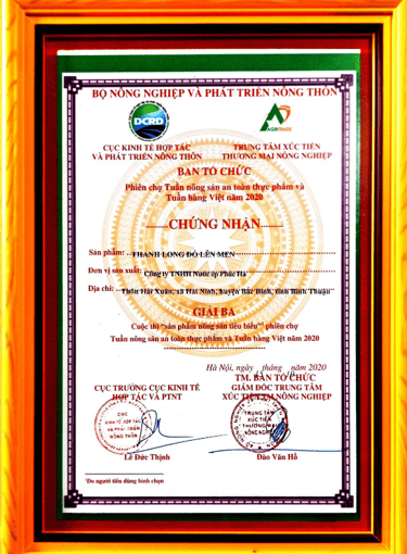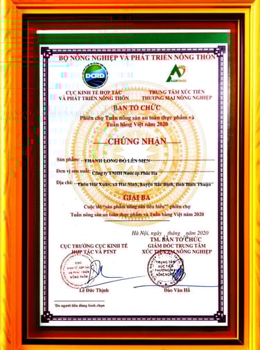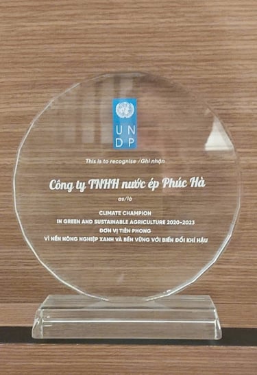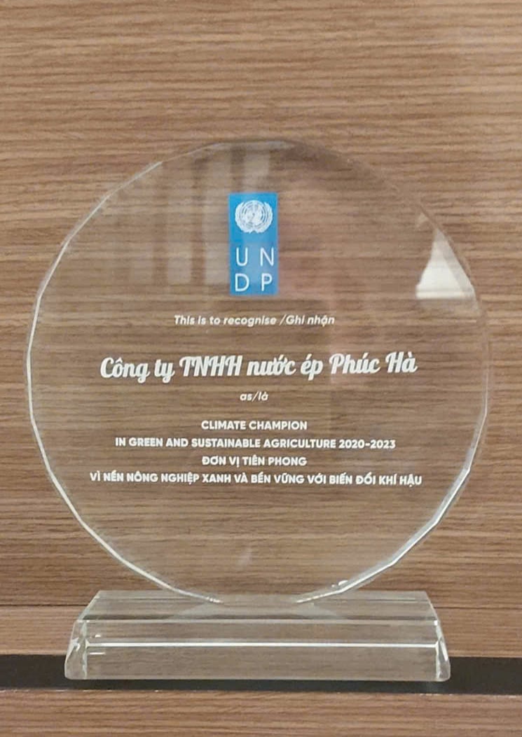 Đơn vị tiên phong nền nông nghiệp xanh và bền vứng với biến đổi khí hậu; cấp bởi Liên Hiệp Quốc 202 - 2023 | Climate Champion in Green and Sustainable Agriculture 2020 - 2023 - Provided by UNDP