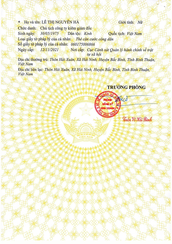 Địa chỉ trụ sở | Address: Thôn Hải Xuân , Xã Hải Ninh, Huyện Bắc Bình, Tỉnh Bình Thuận, Việt Nam